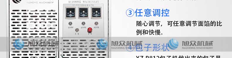 XZ-B812型多功能包子機,它能做的比你想象的多,可生產(chǎn)各種肉包、肉菜包、菜包、小籠包、湯包、生煎包、水晶包、圓饅頭、奶黃包、豆沙包、叉燒包南瓜餅等幾十種包餡制品。