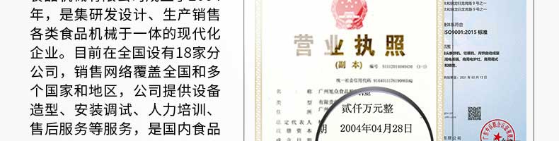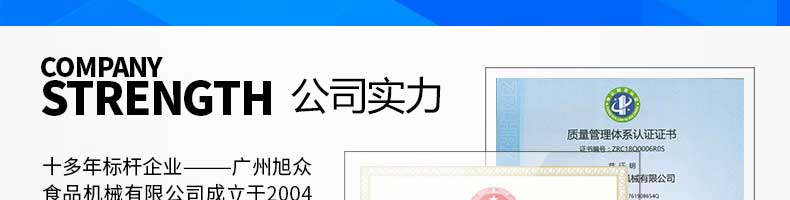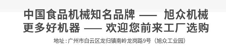 廣州旭眾食品機械有限公司是一家集科研開發(fā),生產(chǎn)設計,營銷服務為一體的現(xiàn)代化生產(chǎn)企業(yè)。現(xiàn)代化生產(chǎn)車間,精湛制造技術,所產(chǎn)機械歷經(jīng)市場重重考驗,不斷贏得海內(nèi)外客戶的贊譽。