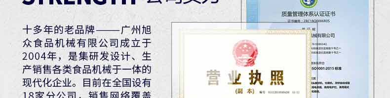 廣州旭眾食品機械有限公司是一家集科研開發(fā),生產(chǎn)設(shè)計,營銷服務(wù)為一體的現(xiàn)代化生產(chǎn)企業(yè)?,F(xiàn)代化生產(chǎn)車間,精湛制造技術(shù),所產(chǎn)機械歷經(jīng)市場重重考驗,不斷贏得海內(nèi)外客戶的贊譽。