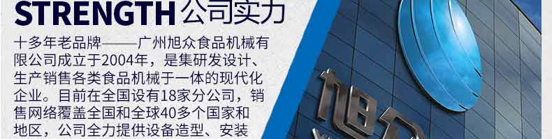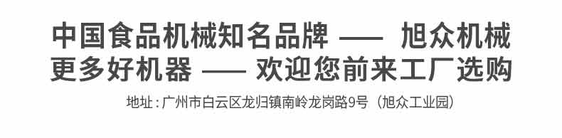 廣州旭眾食品機(jī)械有限公司是一家集科研開(kāi)發(fā),生產(chǎn)設(shè)計(jì),營(yíng)銷服務(wù)為一體的現(xiàn)代化生產(chǎn)企業(yè)?,F(xiàn)代化生產(chǎn)車間,精湛制造技術(shù),所產(chǎn)機(jī)械歷經(jīng)市場(chǎng)重重考驗(yàn),不斷贏得海內(nèi)外客戶的贊譽(yù)。